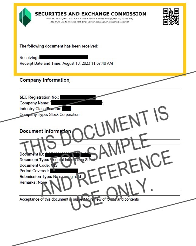 - Latest General Information Sheet (GIS) filed with the SEC including beneficial ownership page and SEC QR Code Acceptance, or Cooperative Annual Performance Report (CAPR), whichever is applicable