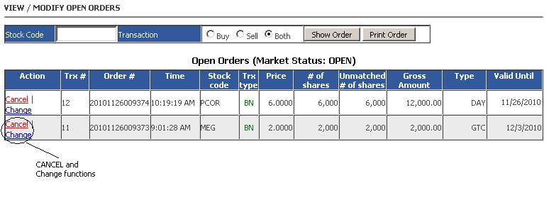 You may enter an ATC order when the market is OPEN or when the market is CLOSED. To enter an ATC order when the market is OPEN, perform the following steps: 1. Log-in to your account at COLFinancial.com. 2. Click on the 'Trade/Portfolio' tab. 3. Select the 'Enter Order' option. 4. Your order entry form now has an additional row labeled Term with three options: ATO, GTC, and ATC. 5. Select the ATC option from the Term selection. 6. Your order entry form now has one less entry which is the Price. 7. Enter your usual order details for Transaction (BUY/SELL), Board (MAIN/ODDLOT), Stock Code, and #Shares. 8. Click on the 'Preview' button and review your order details. You will notice that the price used in your order details is a temporary price equivalent to the last best bid for the stock if there is any. If there is none, this would be equivalent to the closing price of the stock. This temporary price is used for preliminary calculation only to determine more or less if you have the cash or shares to execute the transaction. The actual price that your order will have would be equivalent to the price of the stock during market RUN-OFF. 9. If your order details are acceptable to you, enter your password and click on the 'Place Order' BUTTON. 10. You have just entered your ATC order. 11.To view your ATC order while the market is open, click on the 'View/Modify Order' option. 12.Your ATC orders are indicated by an ATC value under the Term column under the Scheduled Orders heading. 12.When the market state becomes RUN-OFF, your ATC order will get sent to the Exchange with the price equivalent to the price of the stock during RUN-OFF. Only ATC orders which have enough cash or stocks to execute the order will get sent. 13.To view/modify your ATC order while the market is in RUN-OFF, click on the 'View/Modify Order' option. 14.Your ATC orders are indicated by an ATC value under the Term column of the Open Orders column. To enter an ATC order when the market is CLOSED, perform the following steps: 1. Log-in to your account at COLFinancial.com. 2. Click on the 'Trade/Portfolio' tab. 3. Select the 'Off-hours Order' option. 4. Your order entry form now has an additional row labeled Term with three options: ATO, GTC, and ATC. 5. Select the ATC option from the Term selection. 6. Your order entry form now has one less entry which is the Price. 7. Enter your usual order details for Transaction (BUY/SELL), Board (MAIN/ODDLOT), Stock Code, and #Shares. 8. Click on the 'Preview' button and review your order details. You will notice that the price used in your order details is a temporary price equivalent to the last best bid for the stock if there is any. If there is none, this would be equivalent to the closing price of the stock. This temporary price is used for preliminary calculation only to determine more or less if you have the cash or shares to execute the transaction. The actual price that your order will have would be equivalent to the price of the stock during market RUN-OFF. 9. If your order details are acceptable to you, enter your password and click on the 'Place Order' BUTTON. 10. You have just entered your ATC order. 11.To view your ATC order while the market is closed, click on the 'Off-hours View/Cancel' option. 12.Your ATC orders are indicated by an ATC value under the Term column. 12.When the market state becomes RUN-OFF, your ATC order will get sent to the Exchange with the price equivalent to the price of the stock during RUN-OFF. Only ATC orders which have enough cash or stocks to execute the order will get sent. 13.To view/modify your ATC order while the market is in RUN-OFF, click on the 'View/Modify Order' option. 14.Your ATC orders are indicated by an ATC value under the Term column of the Open Orders column.