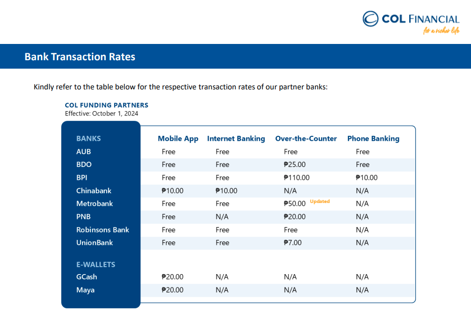 - Partner Banks: BDO, BPI, Metrobank, AUB, Chinabank, Robinsons Bank, Unionbank, PNB