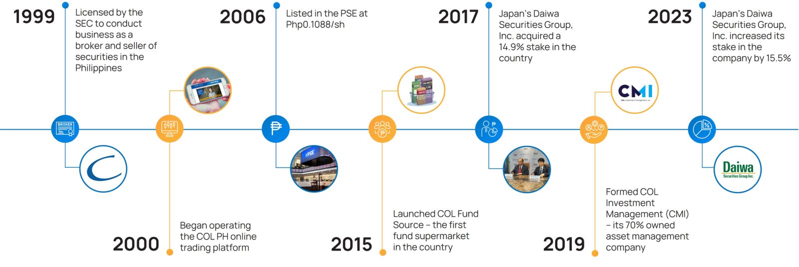 Catherine L. Ong, Filipino, COL’s SVP – Treasurer, is also the Chairman of COL Equity Index Unitized Mutual Fund, Inc. and COL Strategic Growth Equity Unitized Mutual Fund, Inc. (formerly COL Cash Management Unitized Mutual Fund, Inc.), the SVP – Chief Audit Executive and Director of CTS Global Equity Group, Inc. and the Executive Vice President and Treasurer of Cedarside Industries, Inc., Barrington Carpets, Inc., and Citimex, Inc. She has held the latter position for more than 30 years. She was formerly a director of COL. She has extensive experience in banking, having held various positions in Metropolitan Bank and Trust Company (Metrobank). She was an Assistant Vice President and Area Supervisor of Metrobank and served as a Director of Metrobank’s subsidiary, Pan Philippines Life Insurance Corp. (now known as Philippine Axa Life). Ms. Ong graduated from the Philippine Women’s University with a Bachelor of Science Degree in Business Administration, Major in Accounting.